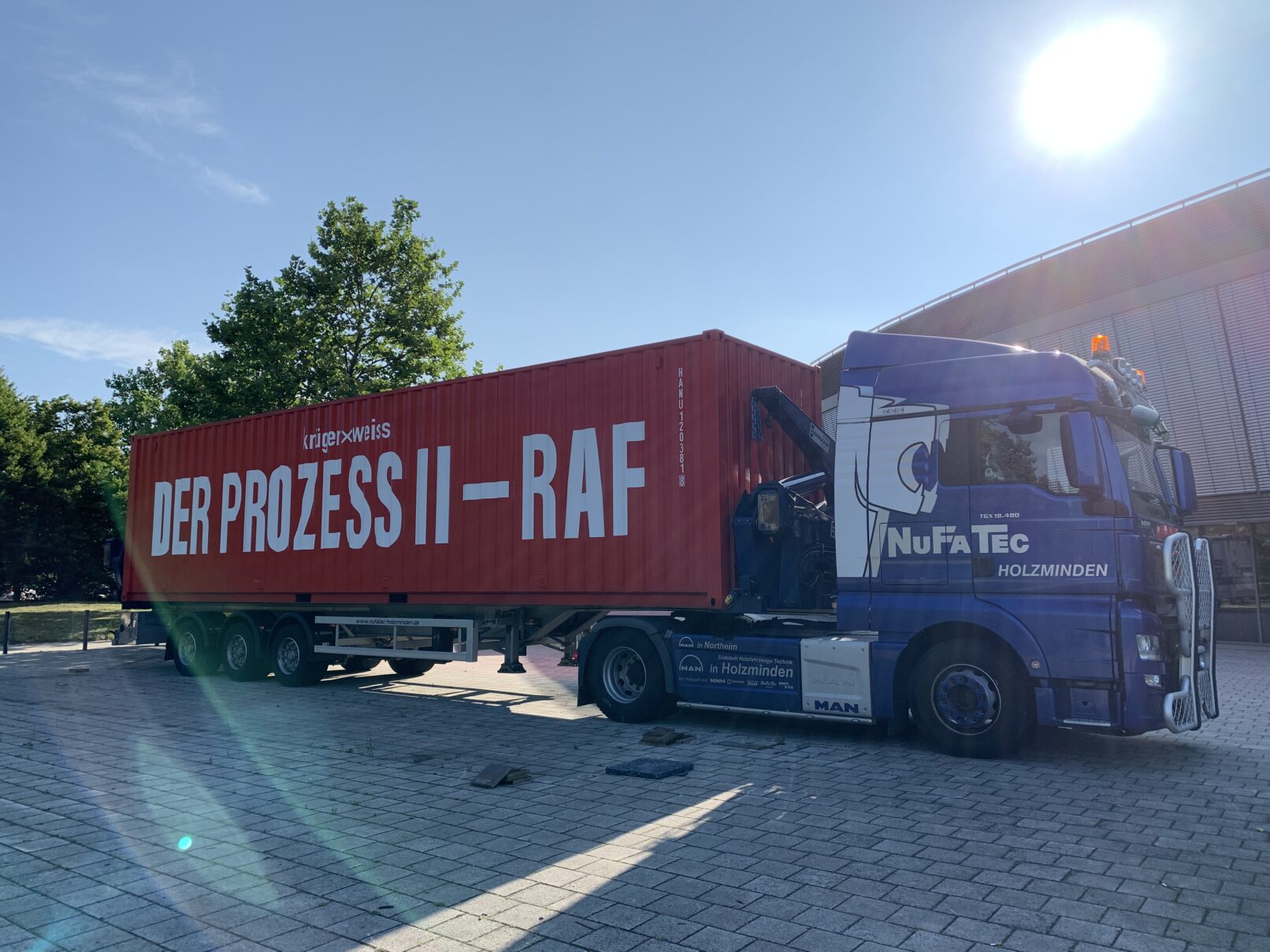 Ein roter Überseecontainer knallt in die Stadt. Im Innern ein Wohnzimmer der 60er Jahre. Durch die Mitte geht ein Riss. Die Generationen sind gespalten. Sie finden nicht zueinander. So auch die Besucher*innen nicht. Getrennt voneinander erleben sie den Strafprozess gegen die erste RAF-Generation als akustisches Kammerspiel.